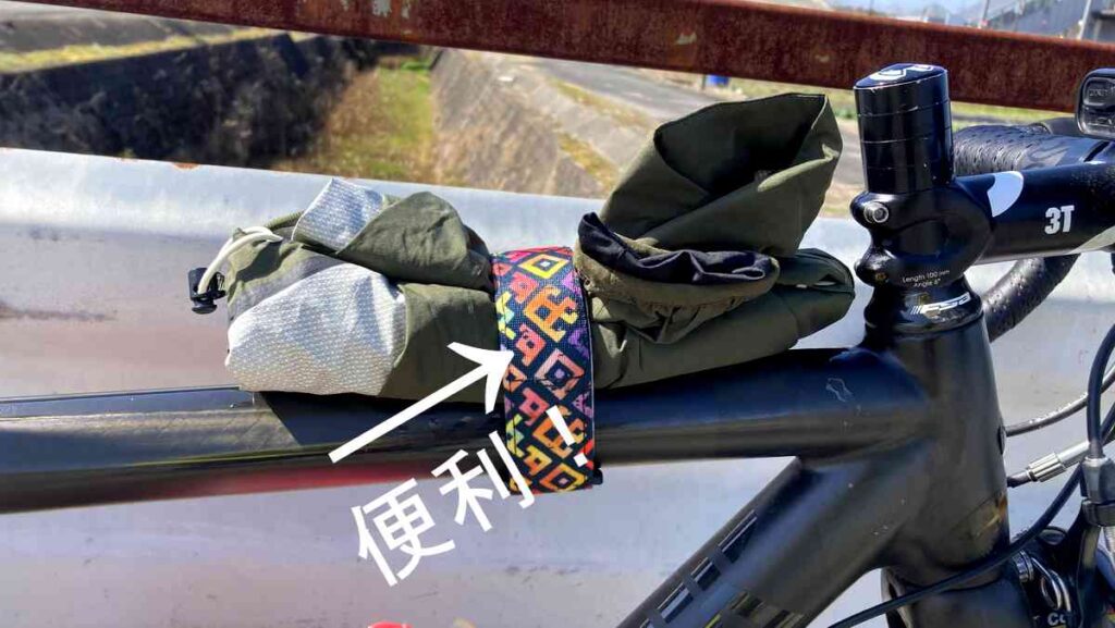 製品レビュー 冬から春に便利なアイテム「Granite Rockband Plus」の紹介。ロードバイクフレームにウインドブレーカーやチューブなどをしっかりとくくりつけることが可能 冬~春のロードバイクのちょっとした悩みを解決する便利なアイテム「Granite Rockband +」の紹介とレビュー
