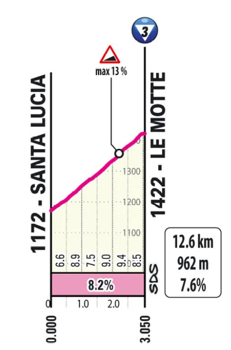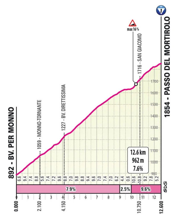 距離は12.6kmとめちゃくちゃ長いわけではないが全体の平均7.6%、そして終盤の数キロは平均9.6%で最大斜度16%も登場するという難しさ。