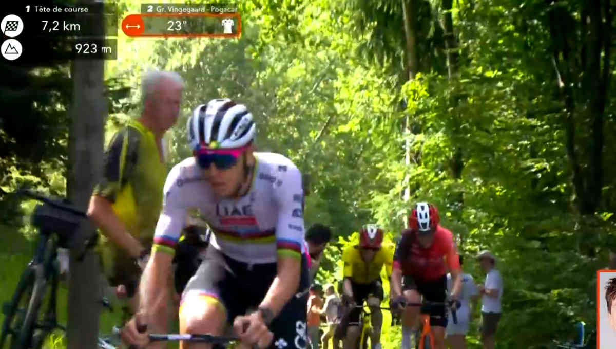 ポガチャルお得意の急勾配でのシッティングアタック。これにヴィンゲゴーがダンシングでついていくが・・・