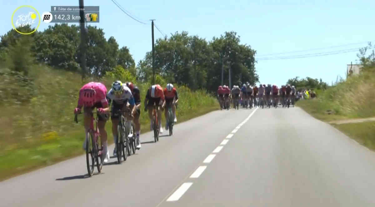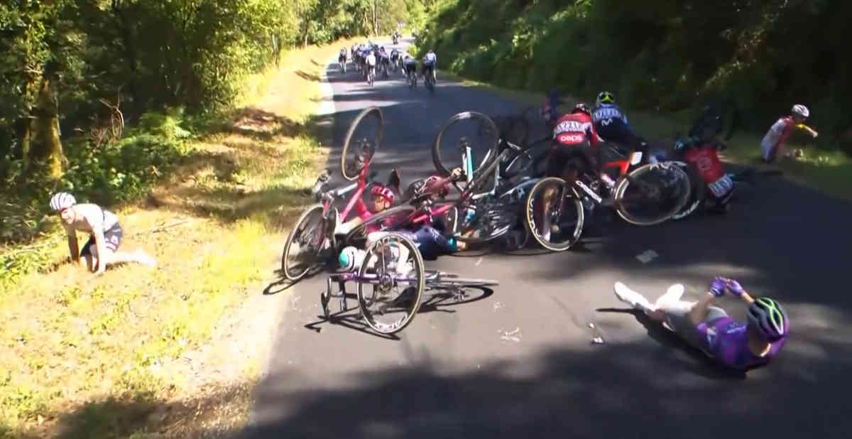 2回目のミュール・ド・ブルターニュに向かう途中で大きな落車が発生する。