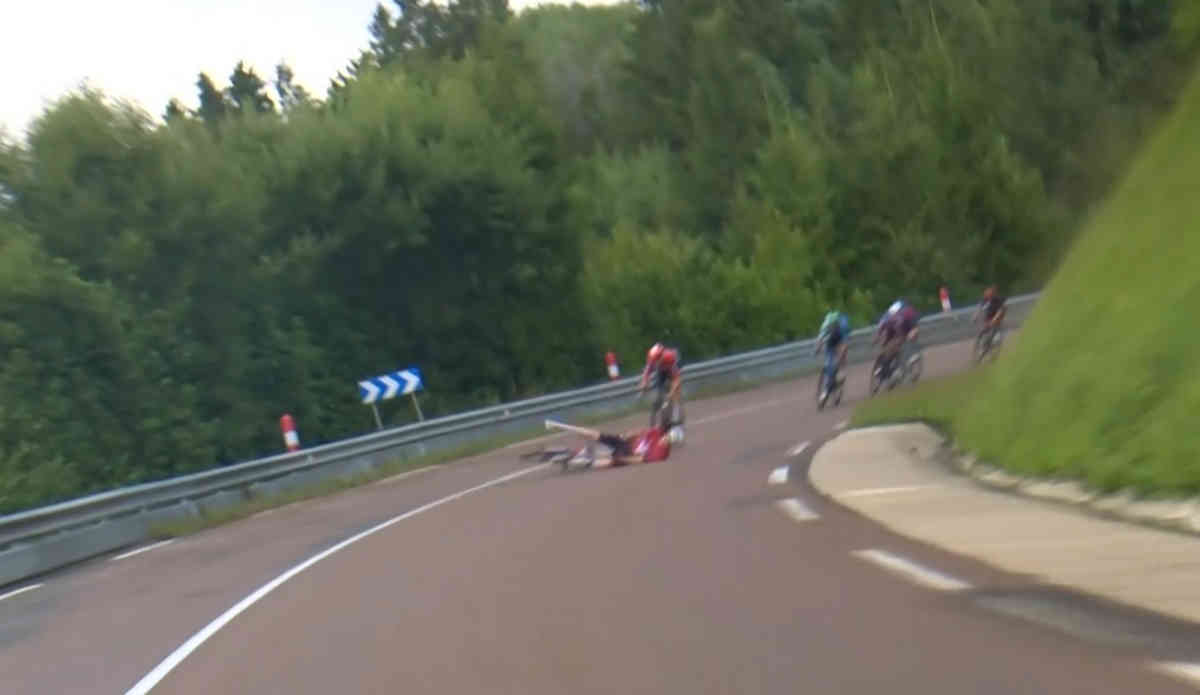 そのマウロ・シュミットは下りで激しい落車をしてしまったが、それにも負けずプロトンに復帰。
