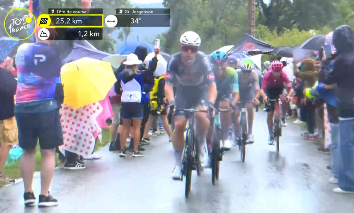 しかしこのスウェニーも追走から逃げ切ることはできず156km地点から始まる4級山岳で追走に捕まる。