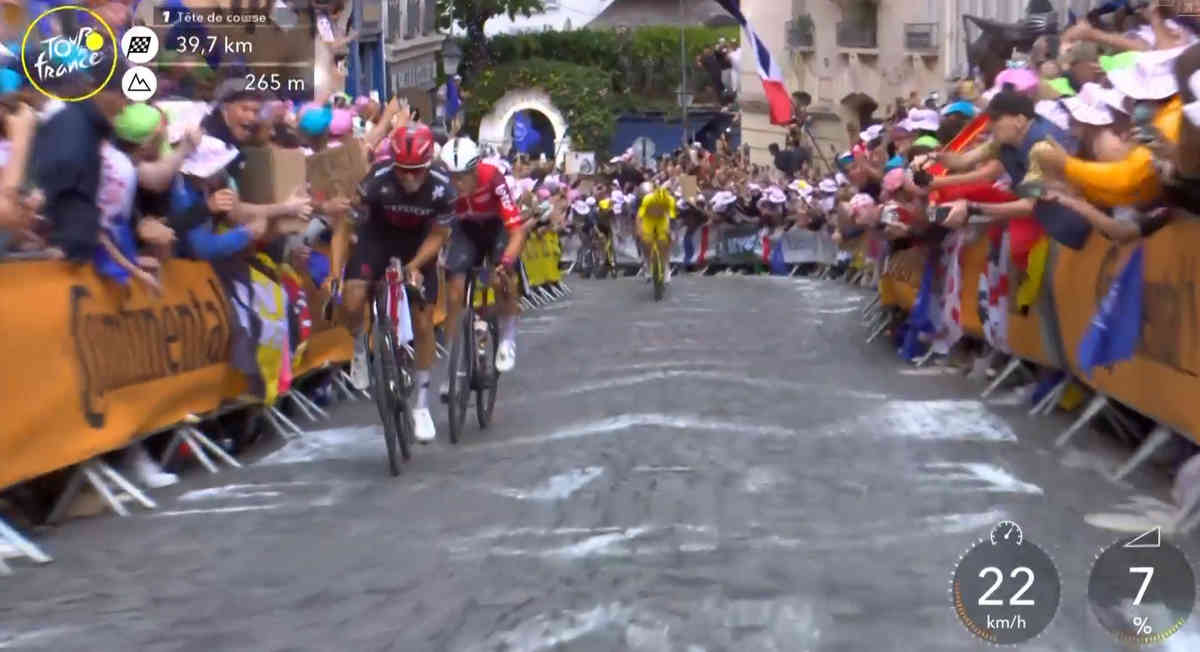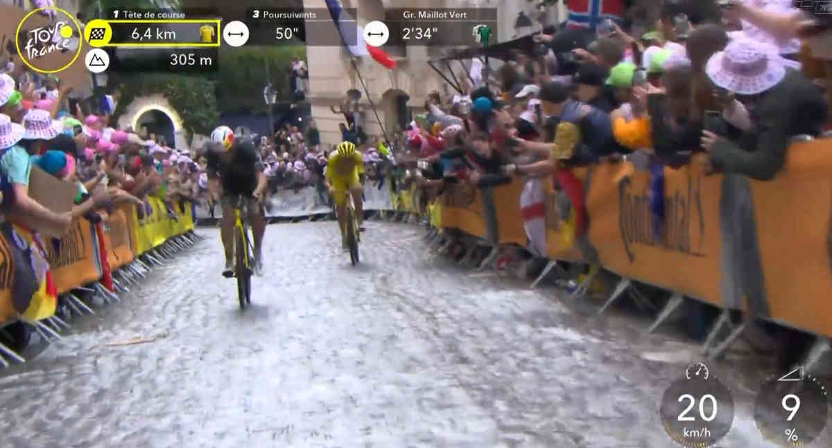 モンマルトルも石畳の登りのため、まるでその場面だけを見ればポガチャル、アラフィリプ、ワウト・ファン・アールトたちもいるためロンド・ファン・フランデレンのように見える。もちろんロンドの激坂のほどのきつさはないのだが。