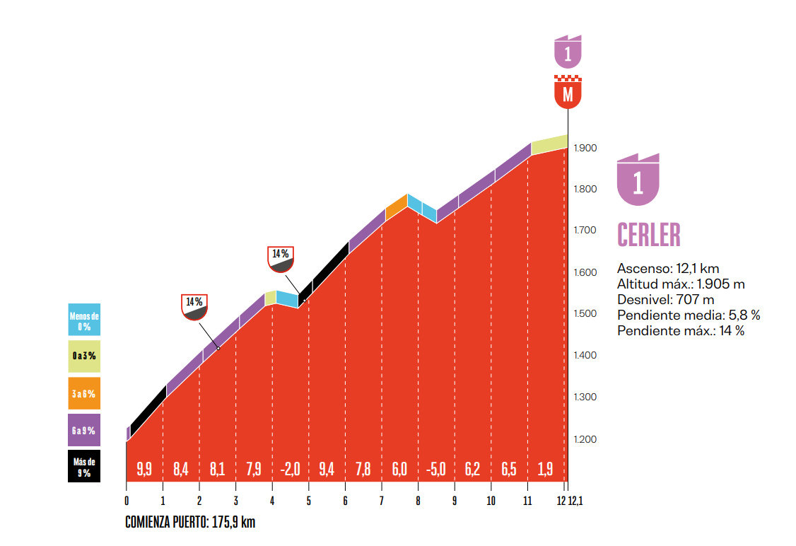 総合エース勢については言えばいつもどおりで最後の1級まで決定的な動きは生まれないだろう。その最後の1級山岳セルレル(Cerler)のプロフィールがこちら。