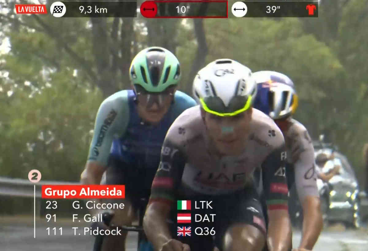 チッコーネは遅れていき、代わりにヴィンゲゴーを追いかけるのはアシストがいなくなったジョアン・アルメイダ、フェリックス・ガル、トム・ピドコックの3名。