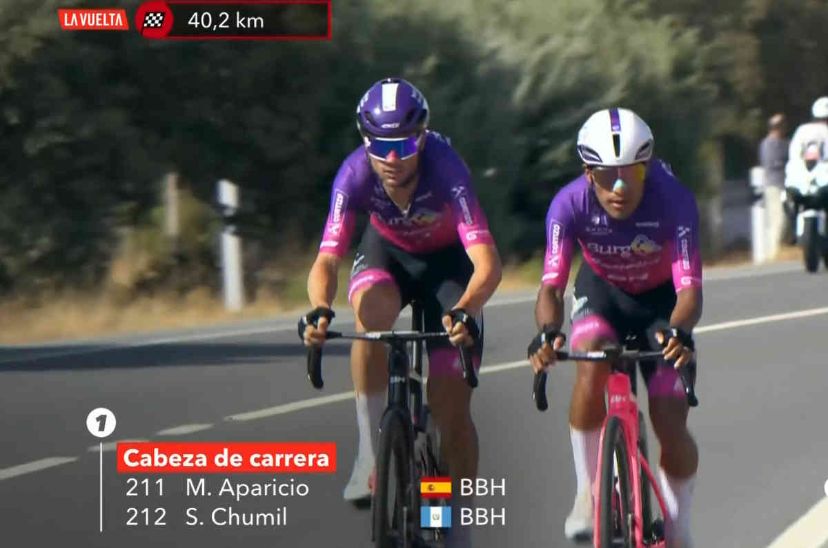 残り51kmで逃げは吸収。しかしその後残り40kmになると、Burgos-BHの2名が飛び出してようやく本日2回目?の逃げができあがる。