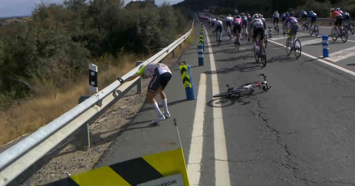 Intermarché-Wantyのルイス・メインチェスが落車してしまうが、特に慌てることもなく、また大きな負傷もなくそのままレースに復帰する。しばらくしてプロトンにも合流。