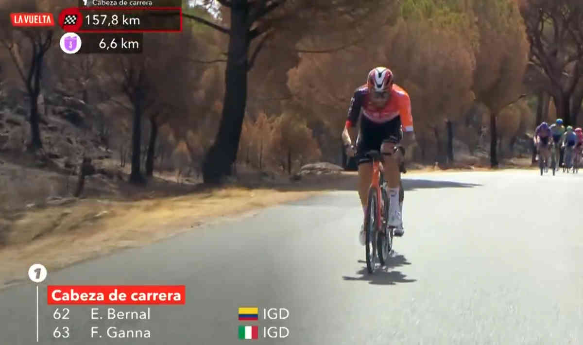 上の妨害地点を抜けたところで逃げ集団からミケル・ランダがアタックするが、超級Mundoに入るとチッコーネとベルナルが合流。