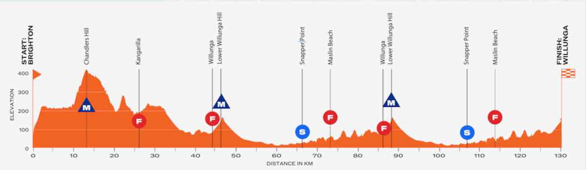上述のようにコースは40kmほどの短縮で、ウィランガヒルもなくなったがそれでもこのように決して簡単には勝てないというコース設定だった。