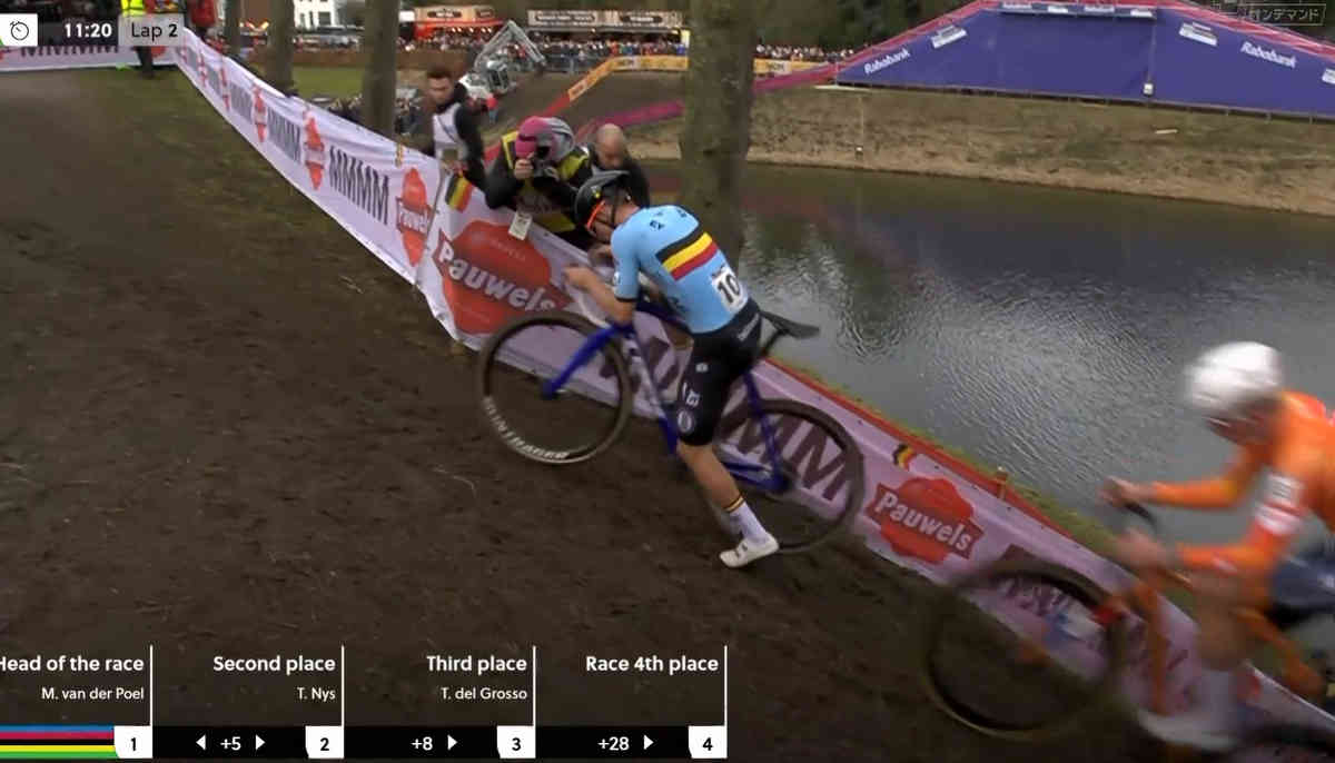 そしてそんな3人の中でもやはりマチュー・ファン・デル・プールは別格だった。今回のコースの中には激坂があるのだが、その手前には急峻な下りがある。つまり、下りで勢いをつけて激坂につっこむ設定だ。