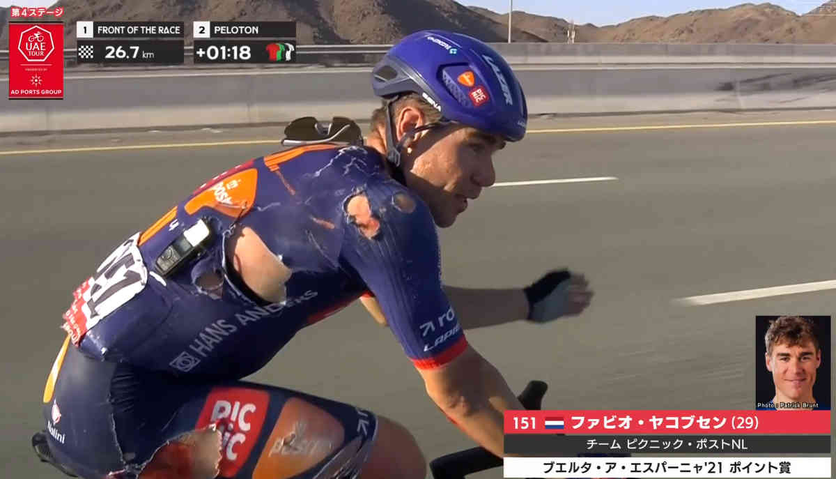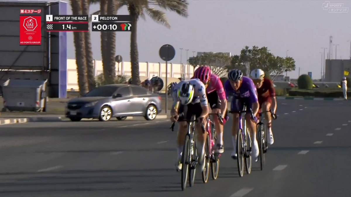 昨日の2026UAEツアー第4ステージはとてもおもしろい展開となった。逃げの数名が集団から逃げて逃げて逃げまくったからだ。