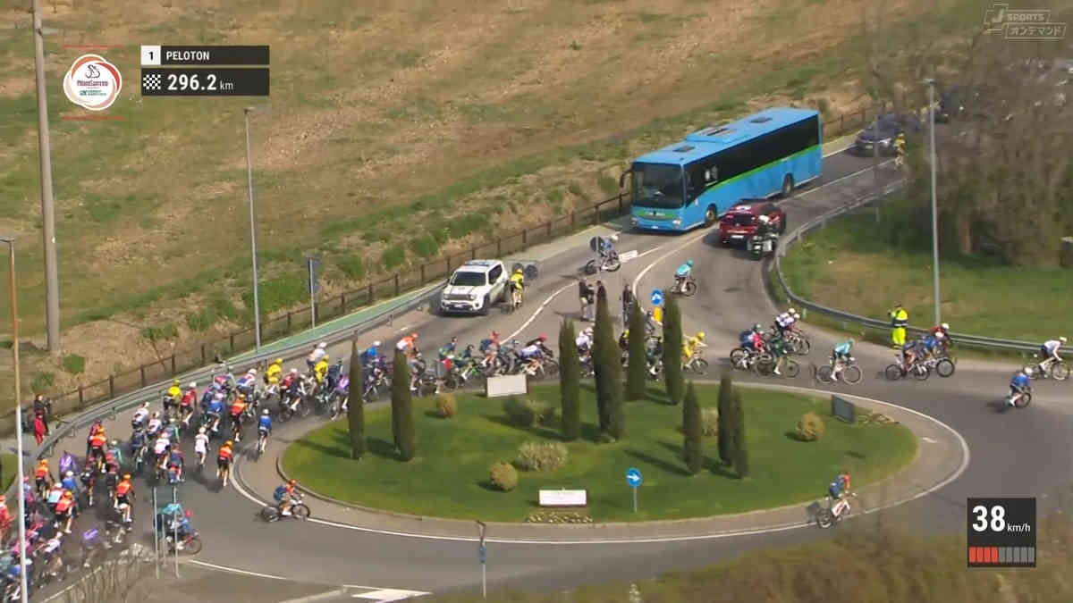 今年のミラノ~サンレモはスタート直後に10名ほどの逃げができたのだが、いきなり波乱が発生。なんといきなり逃げが道を間違えてしまう。