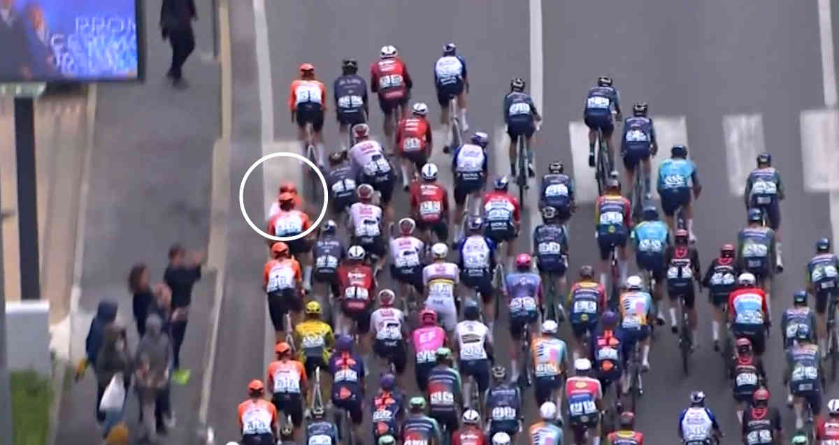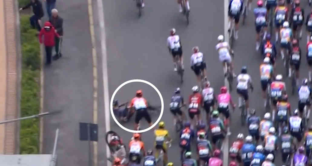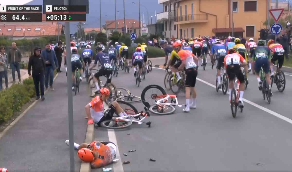 この落車に多くの選手が巻き込まれる。そこにはビニアム・ギルマイ、マッテオ・ジョーゲンソン、ワウト・ファン・アールト、ジュリオ・ペリツァーリなど有力勢も含まれた。
