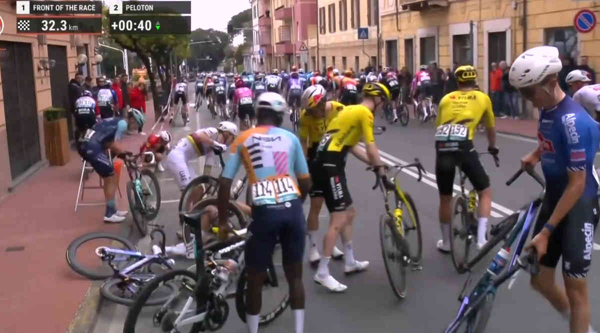 🌈 Tadej Pogacar goes down as we approach la Cipressa, and some big names are involved too –