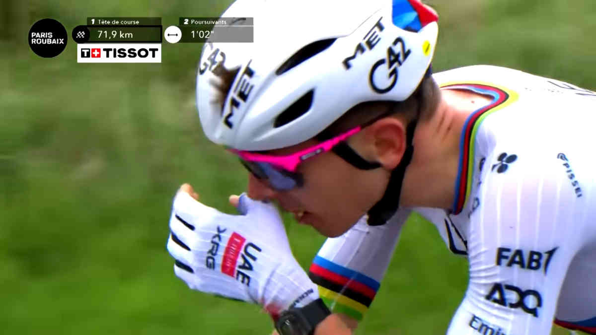 それと比べるために、次の画像を見て欲しい。これは昨年のパリ~ルーベでのポガチャルのものだ。