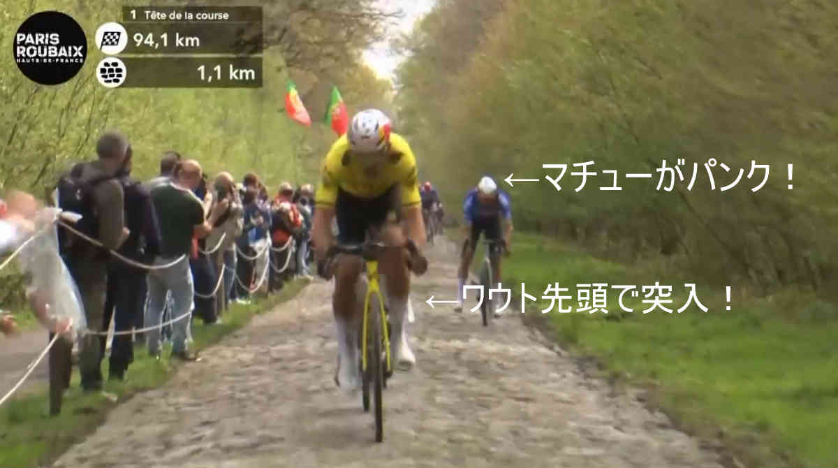 そのアランベールでなんと今度はマチュー・ファン・デル・プールが痛恨のパンク!