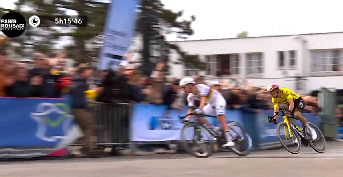 レースもいよいよフィナーレに近づくと、最後の5つ星石畳区間のカルフール・ドラルブルなどではタデイ・ポガチャルがワウト・ファン・アールトへ攻撃を繰り返すも、ワウトは必死の形相でそれに耐え続けた。