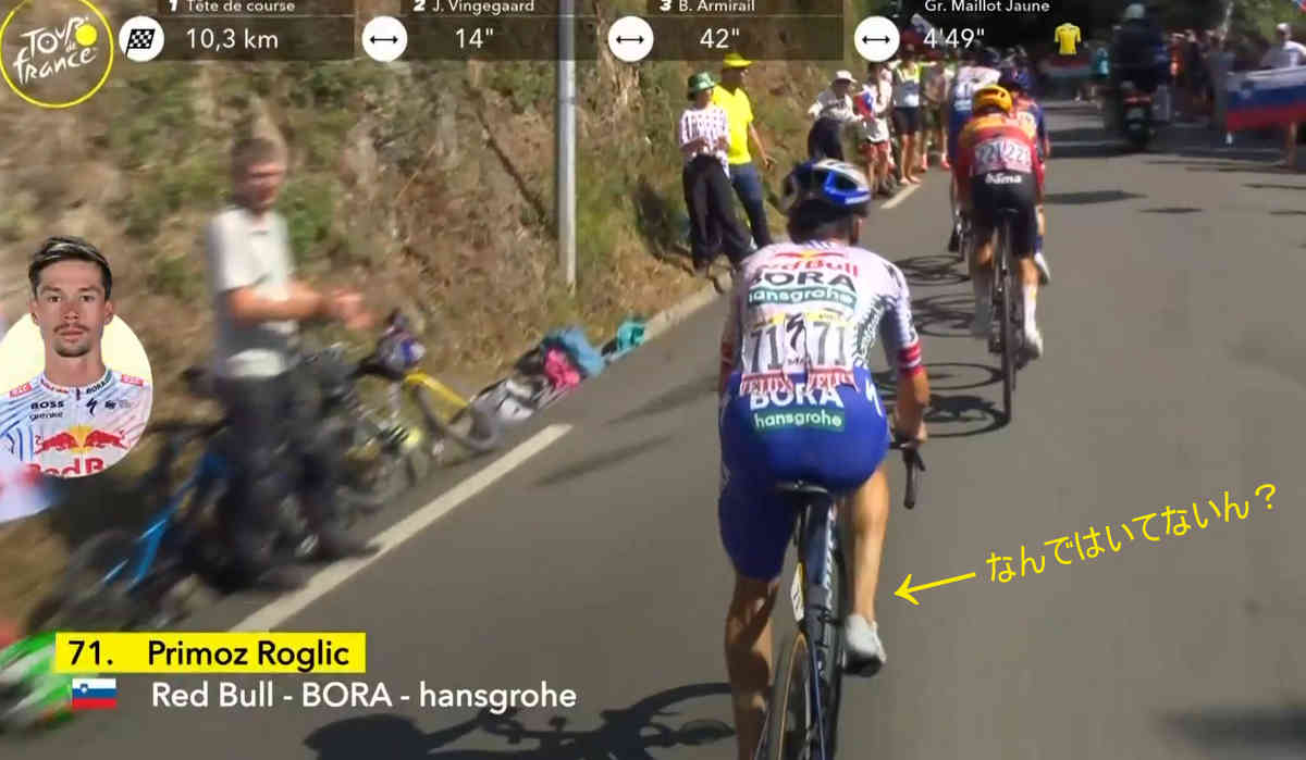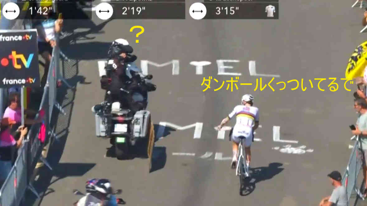 生で観ていたのは1級山岳の途中までだったんですが、その時点でヴィスマのペースアップでジョーゲンソンが遅れて、慌ててヴィスマがペースを落とすシーンが流れていたので、(色んな意味で)イヤーな予感はしていたのですがこんなことになるとは〜