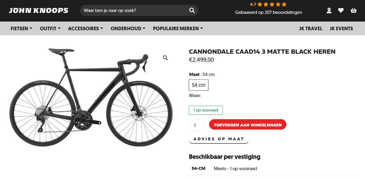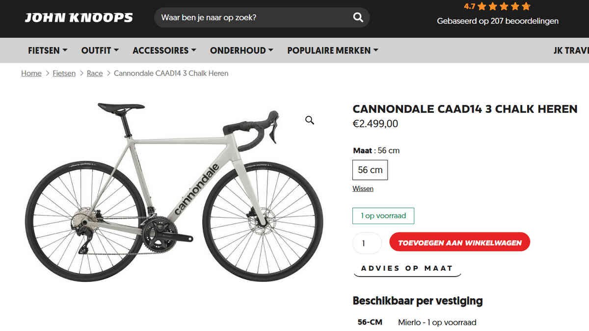 そのうちの1つのショップがオランダのJOHN KNOOPSというショップのページで、次のようなCAAD14の販売ページがすでに展開されている。さっそくCAAD14の姿をみて欲しい。